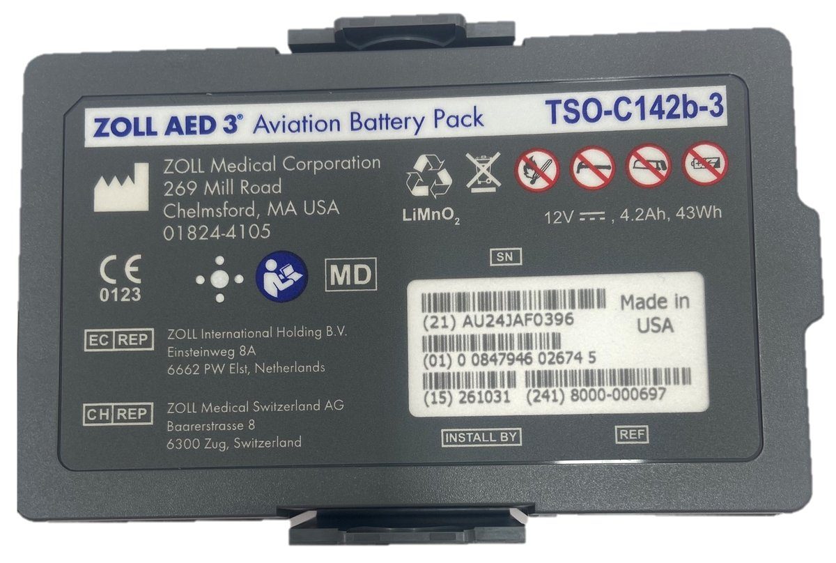 - This aviation-specific battery pack ensures reliable power for your defibrillator in aviation environments