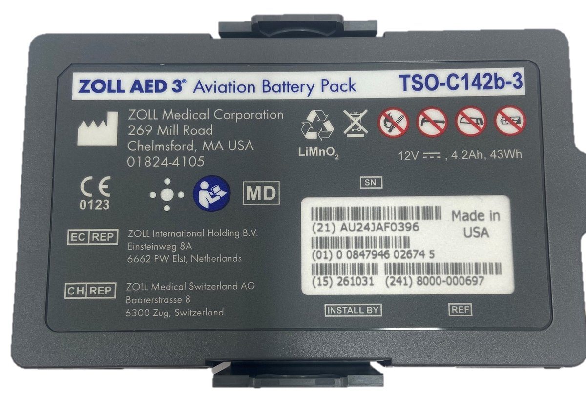 - The AED Battery Pack (Aviation) is designed specifically for use with the ZOLL AED 3